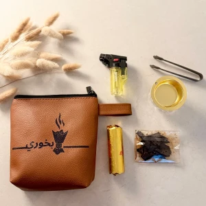 جنطة جلد orange تحتوي على ( مبخر + بخور كمبودي + ملقط + فحم + ولاعه )