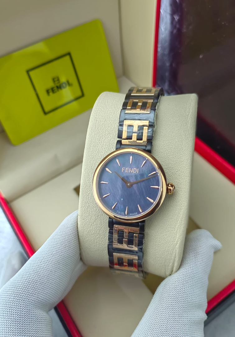 ساعه فيندي نسائية ماستر درجه فوق الاولى نفس الاصليه بالحجم و الشكل و الختومات و الوزن بالضبط ( battery ) و مطليه روديوم لون السير ما يتغير و لا يصدي جميع الالوان الي فالصوره متوفرين
