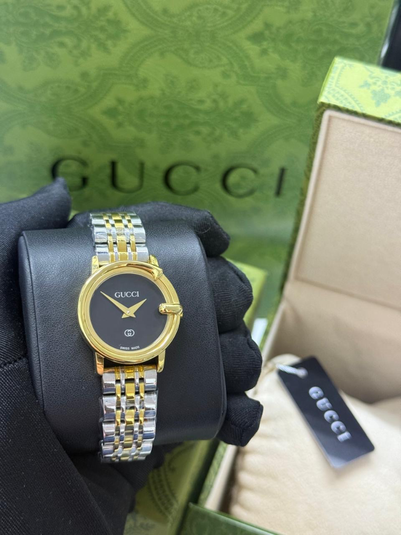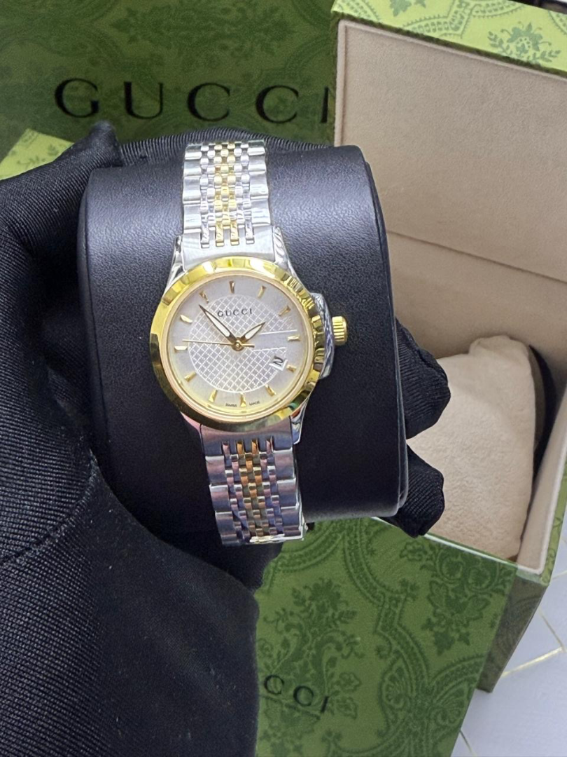 ساعات قوتشي نسائية ماستر درجه فوق الاولى نفس الاصليه بالحجم و الشكل و الختومات و الوزن بالضبط ( battery ) و مطليه روديوم لون السير ما يتغير و لا يصدي جميع الالوان الي فالصوره متوفرين